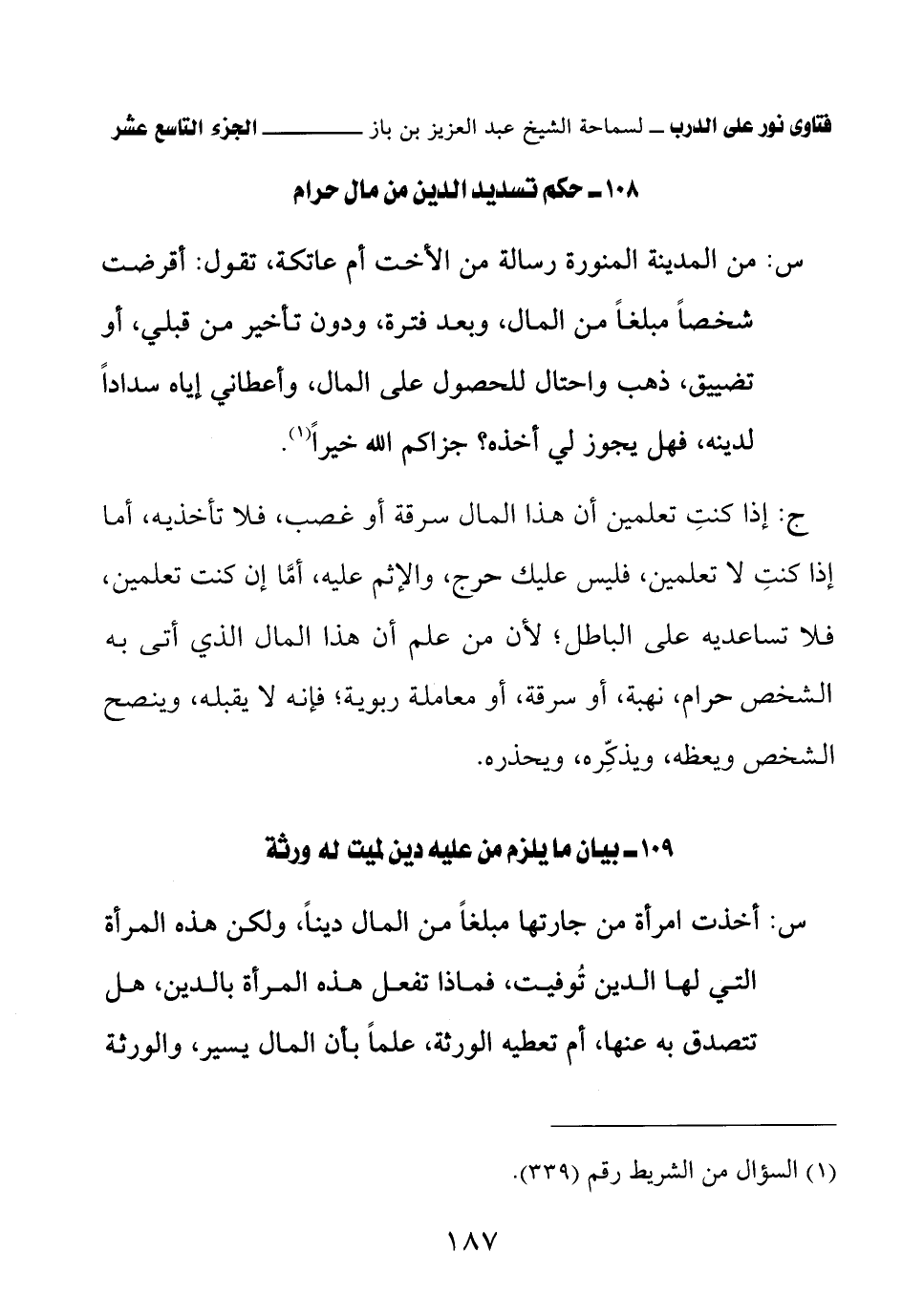 كتاب فتاوى نور على الدرب لابن باز بعناية الشويعر (اسم الجزء: 19)