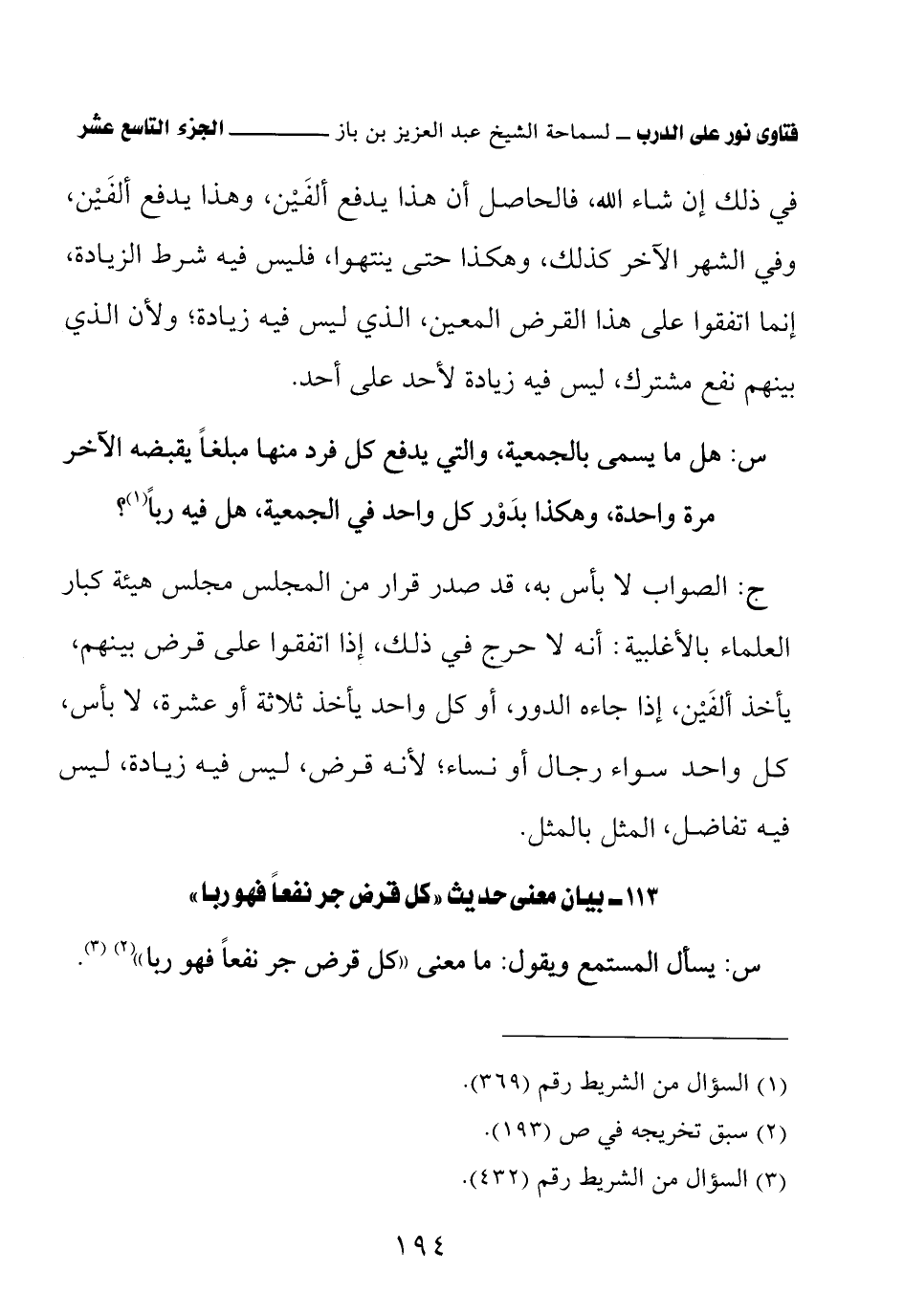 113 - بيان معنى حديث «كل قرض جر نفعًا فهو ربا»
