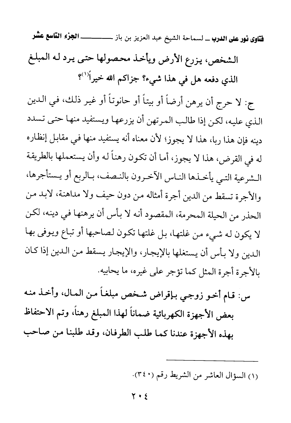 (¬1) السؤال العاشر من الشريط رقم (340).
