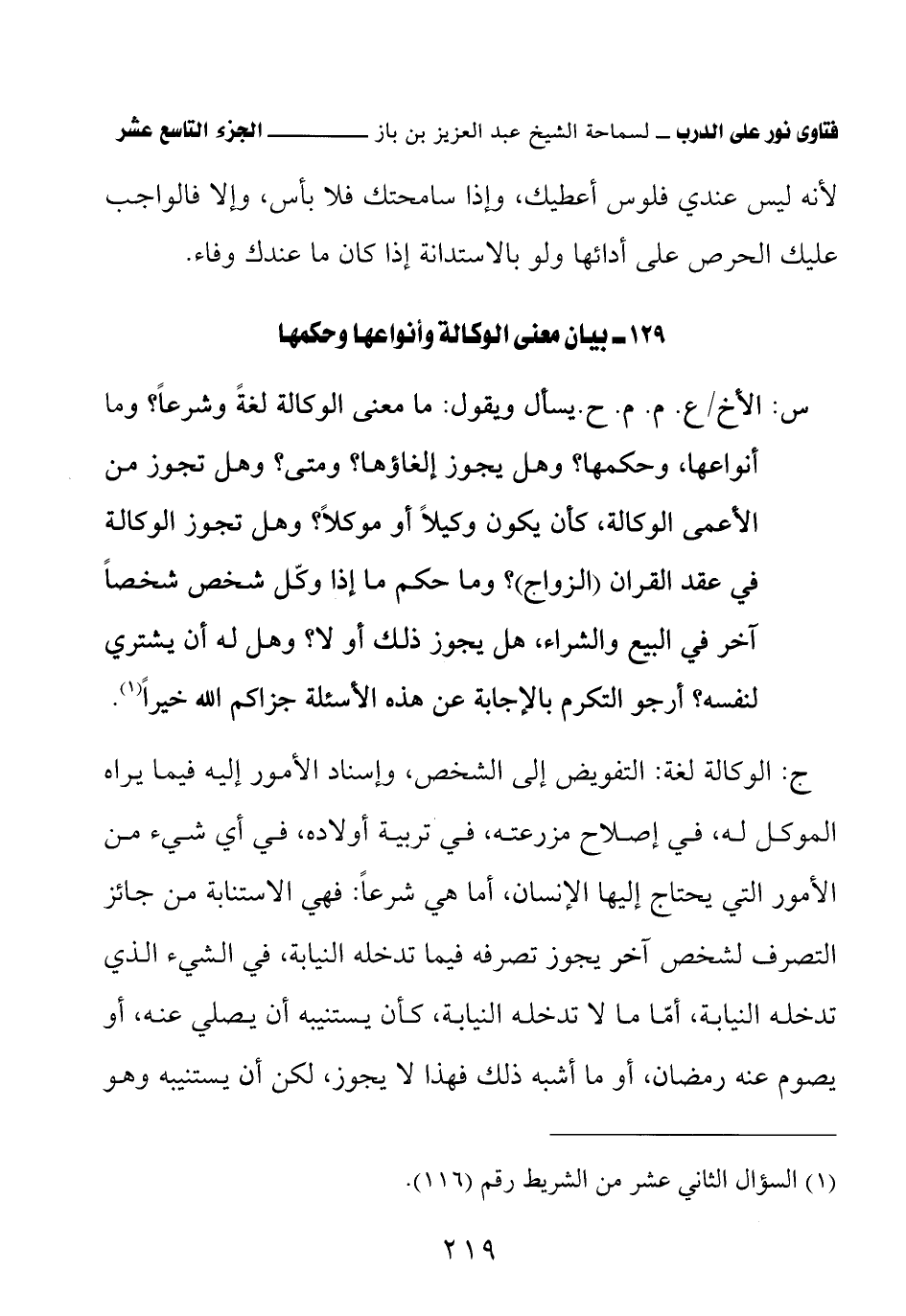 129 - بيان معنى الوكالة وأنواعها وحكمها
