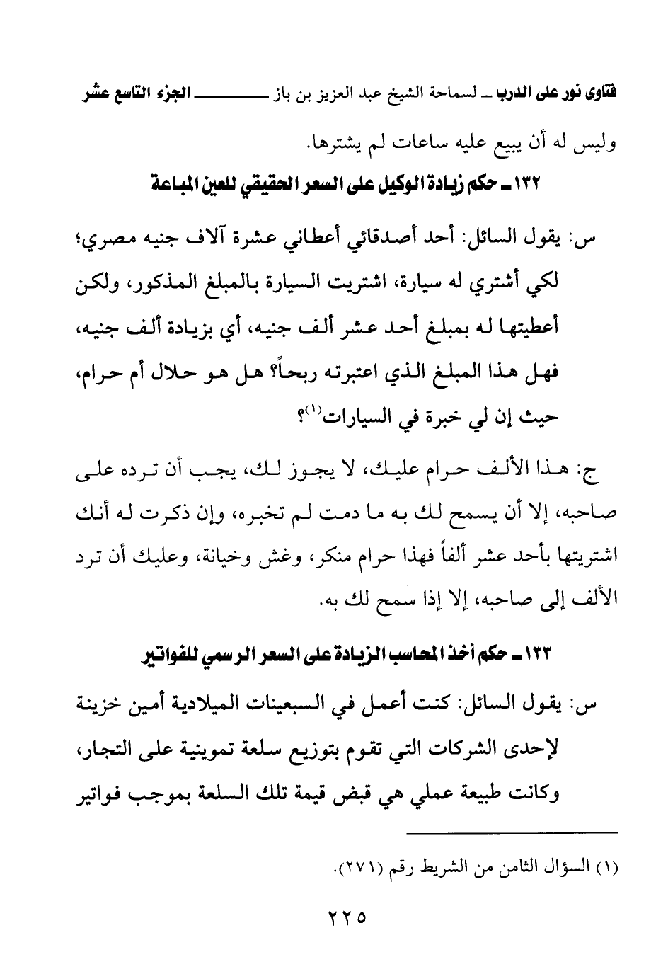 132 - حكم زيادة الوكيل على السعر الحقيقي للعين المبيعة