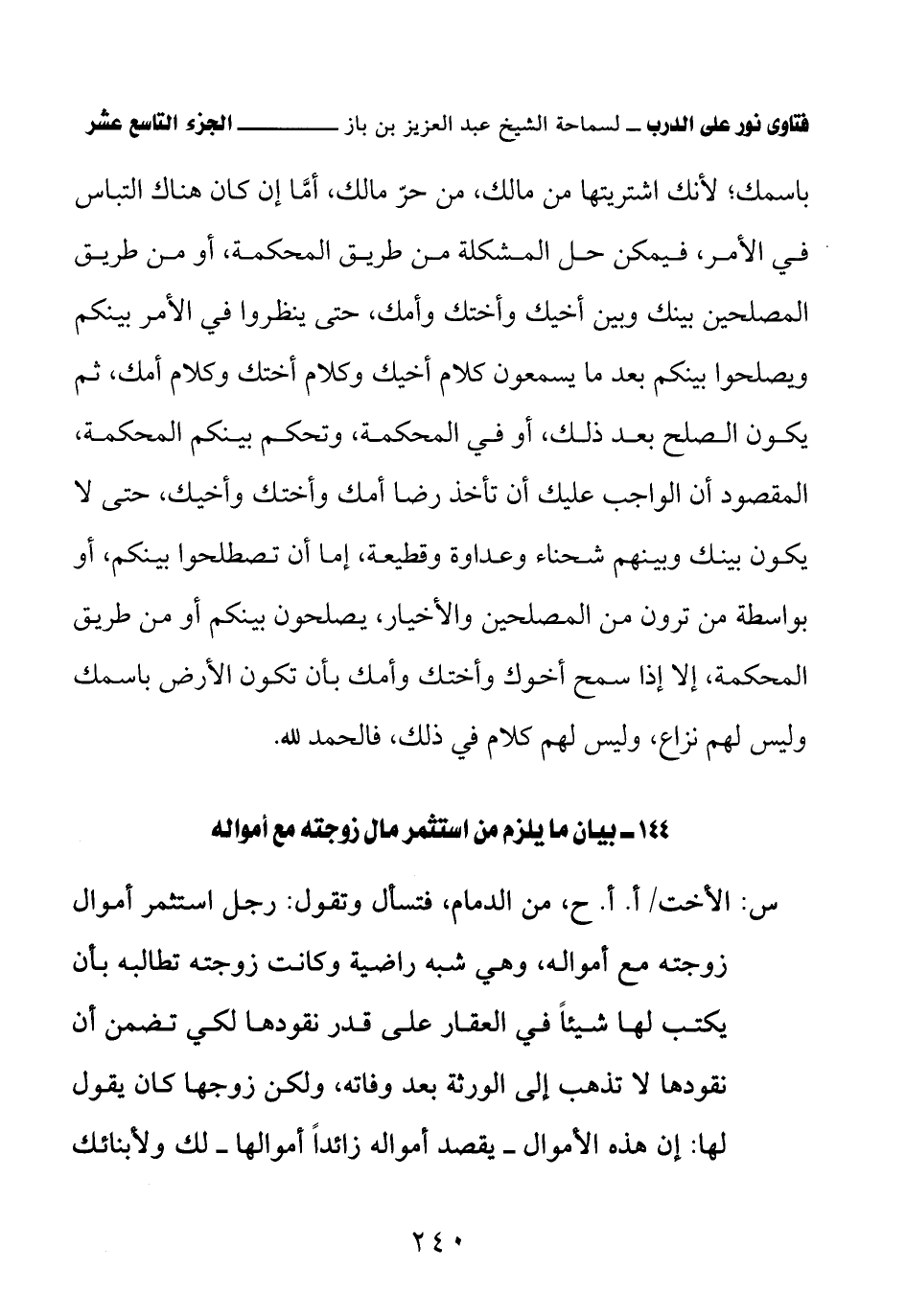 144 - بيان ما يلزم من استثمر مال زوجته مع أمواله
