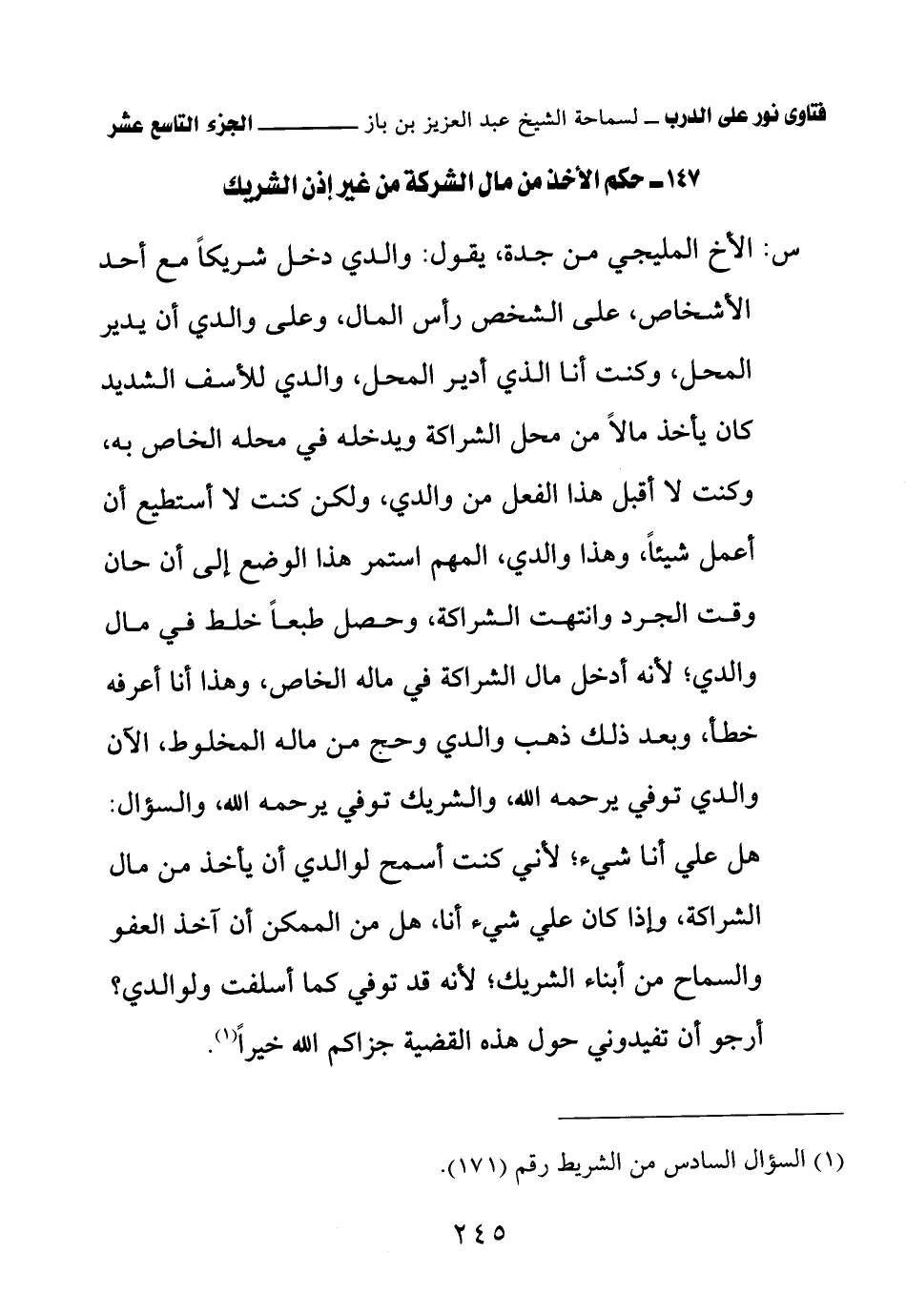 (¬1) السؤال السادس من الشريط رقم (171).
