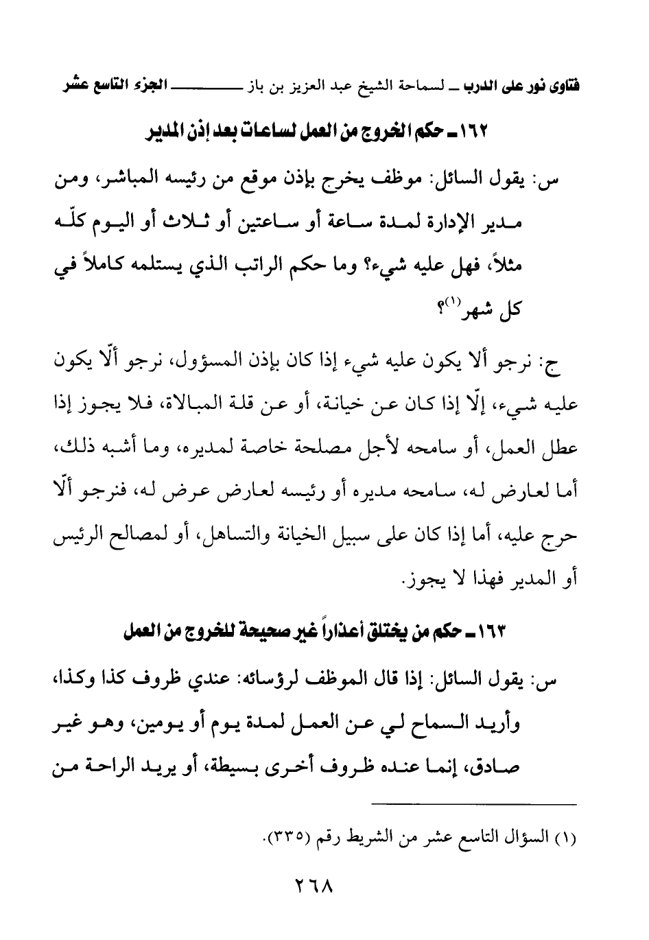 162 - حكم الخروج من العمل لساعات بعد إذن المدير
