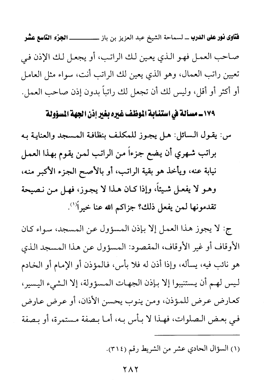 179 - مسألة في استنابة الموظف غيره بغير إذن الجهة المسؤولة
