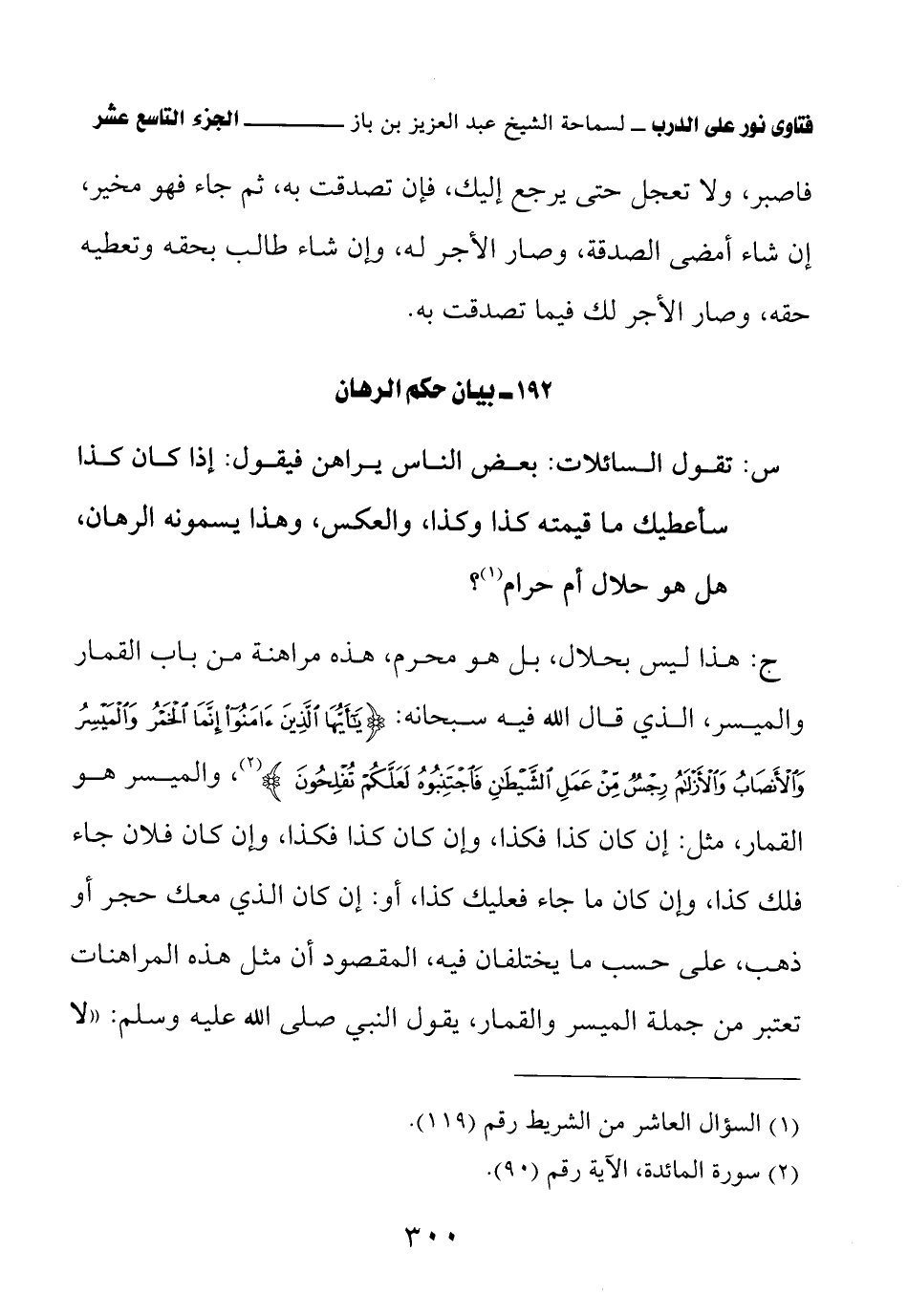كتاب فتاوى نور على الدرب لابن باز بعناية الشويعر (اسم الجزء: 19)
