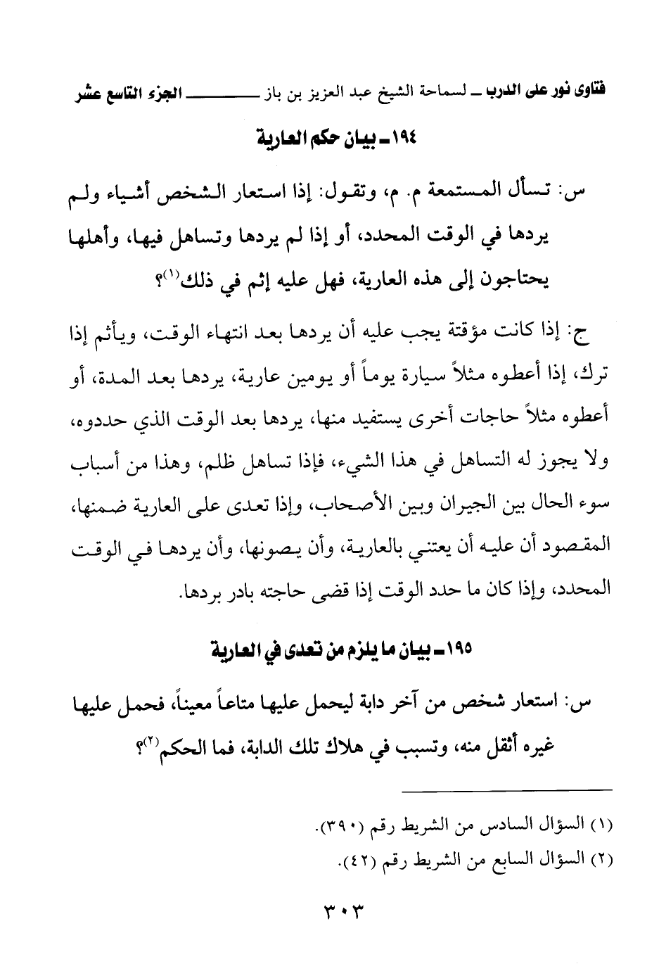 195 - بيان ما يلزم من تعدى في العارية