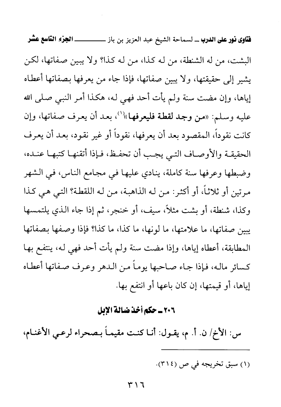 206 - حكم أخذ ضالة الإبل