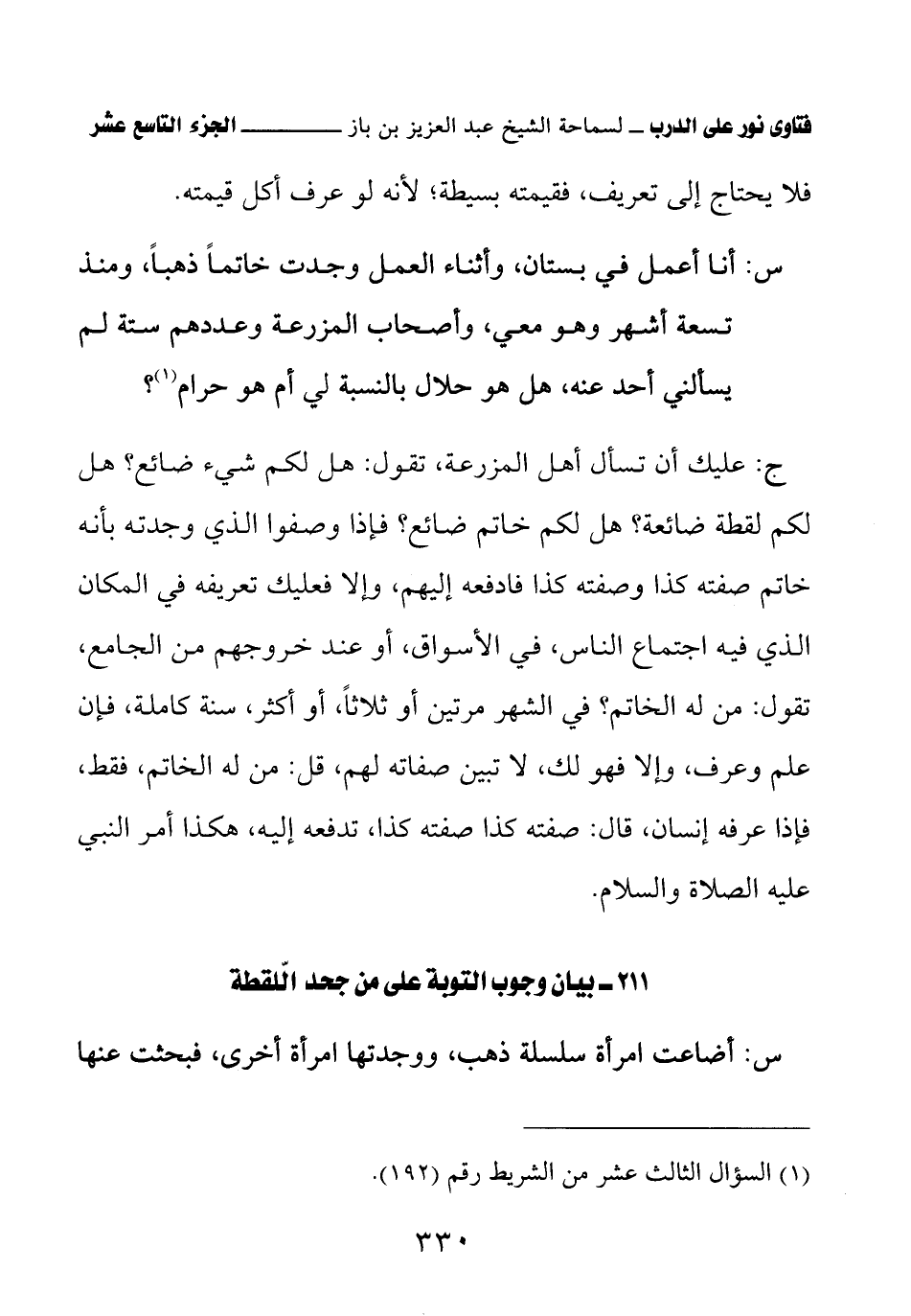كتاب فتاوى نور على الدرب لابن باز بعناية الشويعر (اسم الجزء: 19)