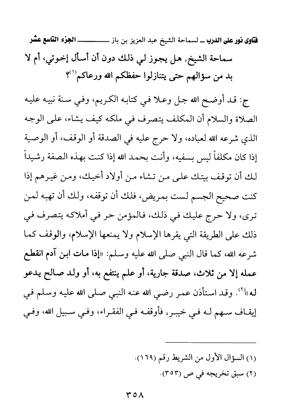 كتاب فتاوى نور على الدرب لابن باز بعناية الشويعر (اسم الجزء: 19)