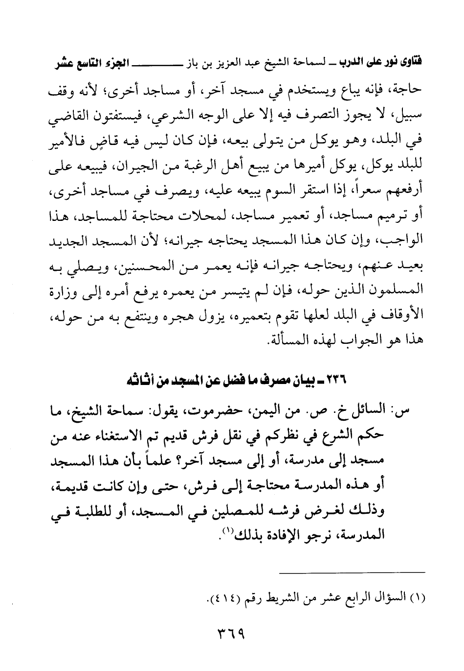 236 - بيان مصرف ما فضل عن المسجد من أثاثه