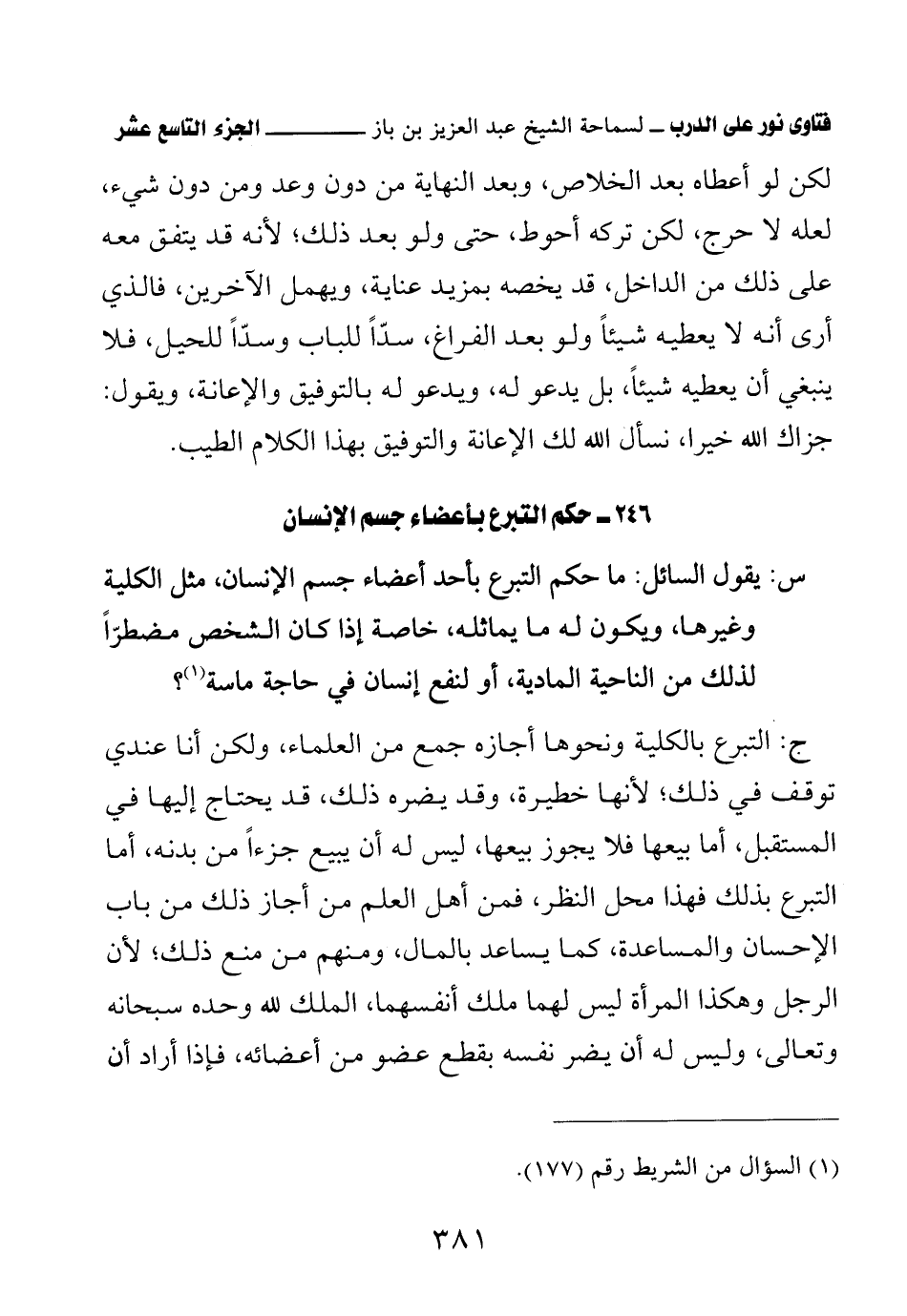 246 - حكم التبرع بأعضاء جسم الإنسان