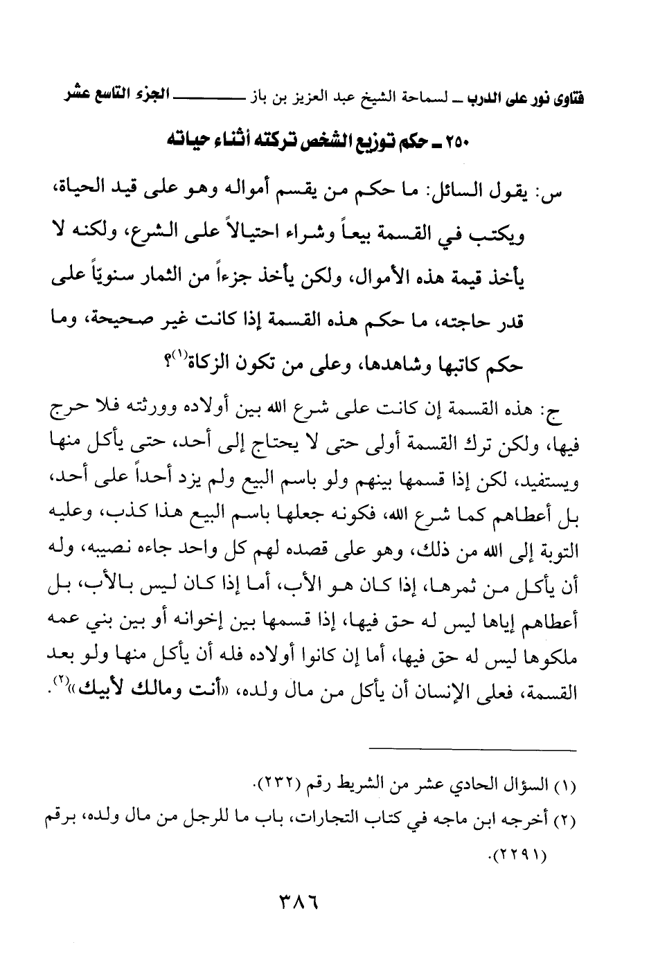 250 - حكم توزيع الشخص تركته أثناء حياته