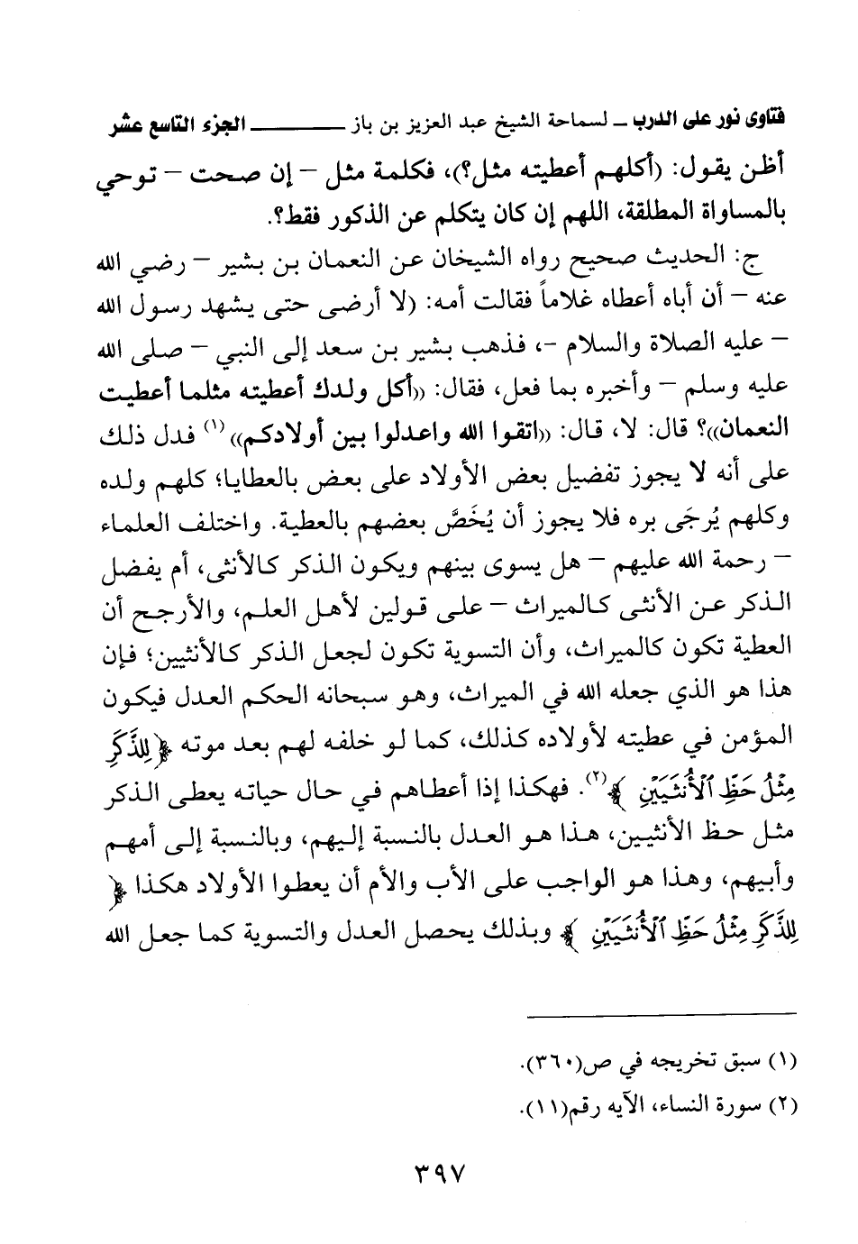 كتاب فتاوى نور على الدرب لابن باز بعناية الشويعر (اسم الجزء: 19)