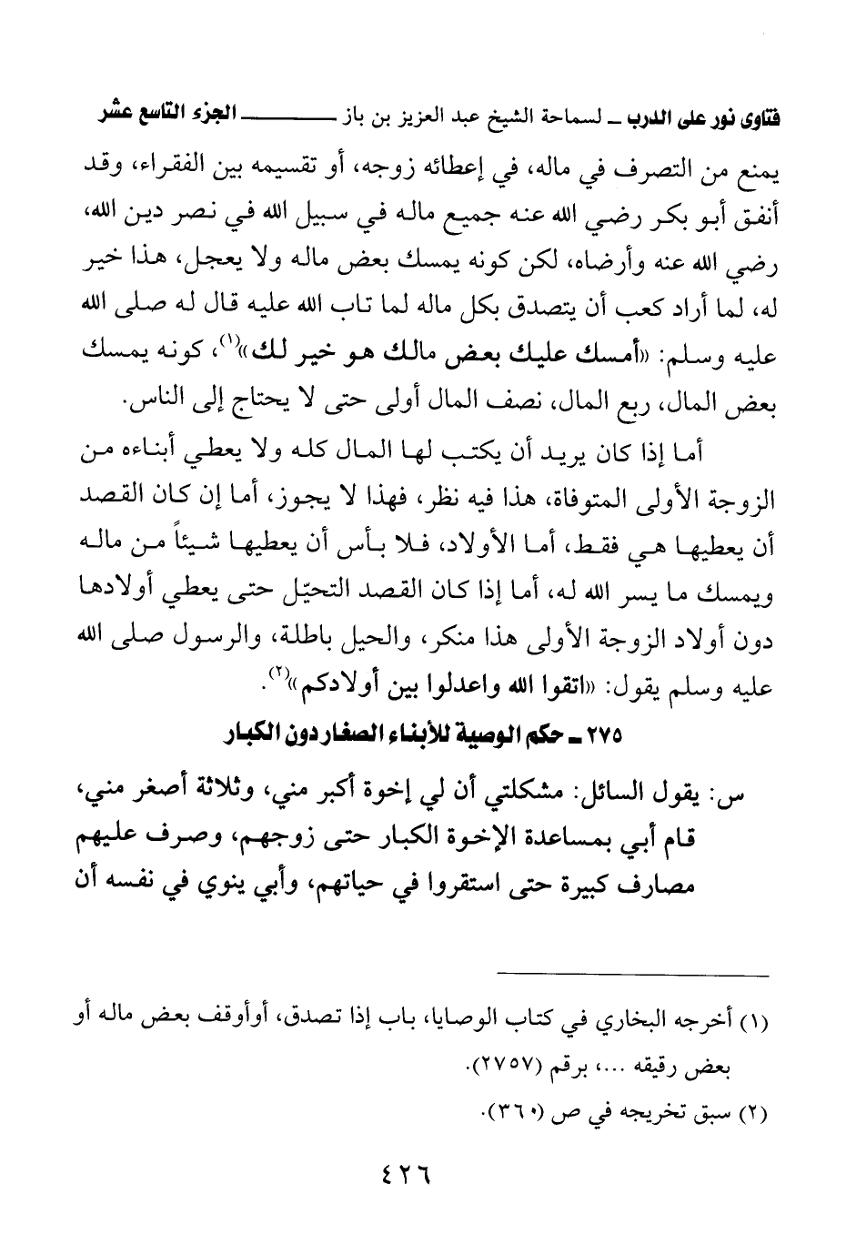 كتاب فتاوى نور على الدرب لابن باز بعناية الشويعر (اسم الجزء: 19)