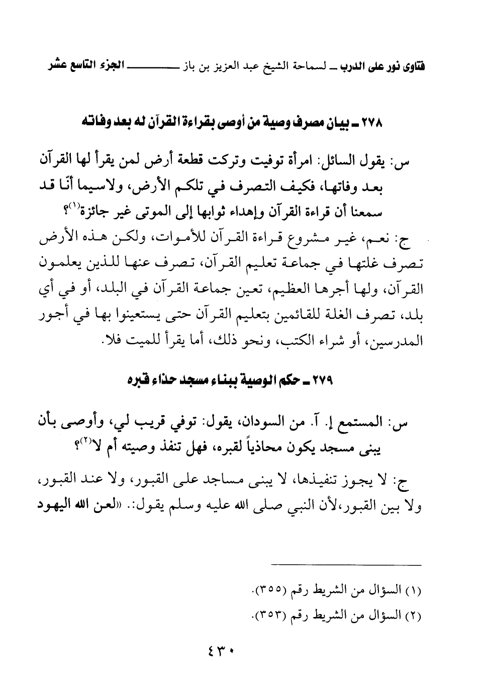 278 - بيان مصرف وصية من أوصى بقراءة القرآن له بعد وفاته