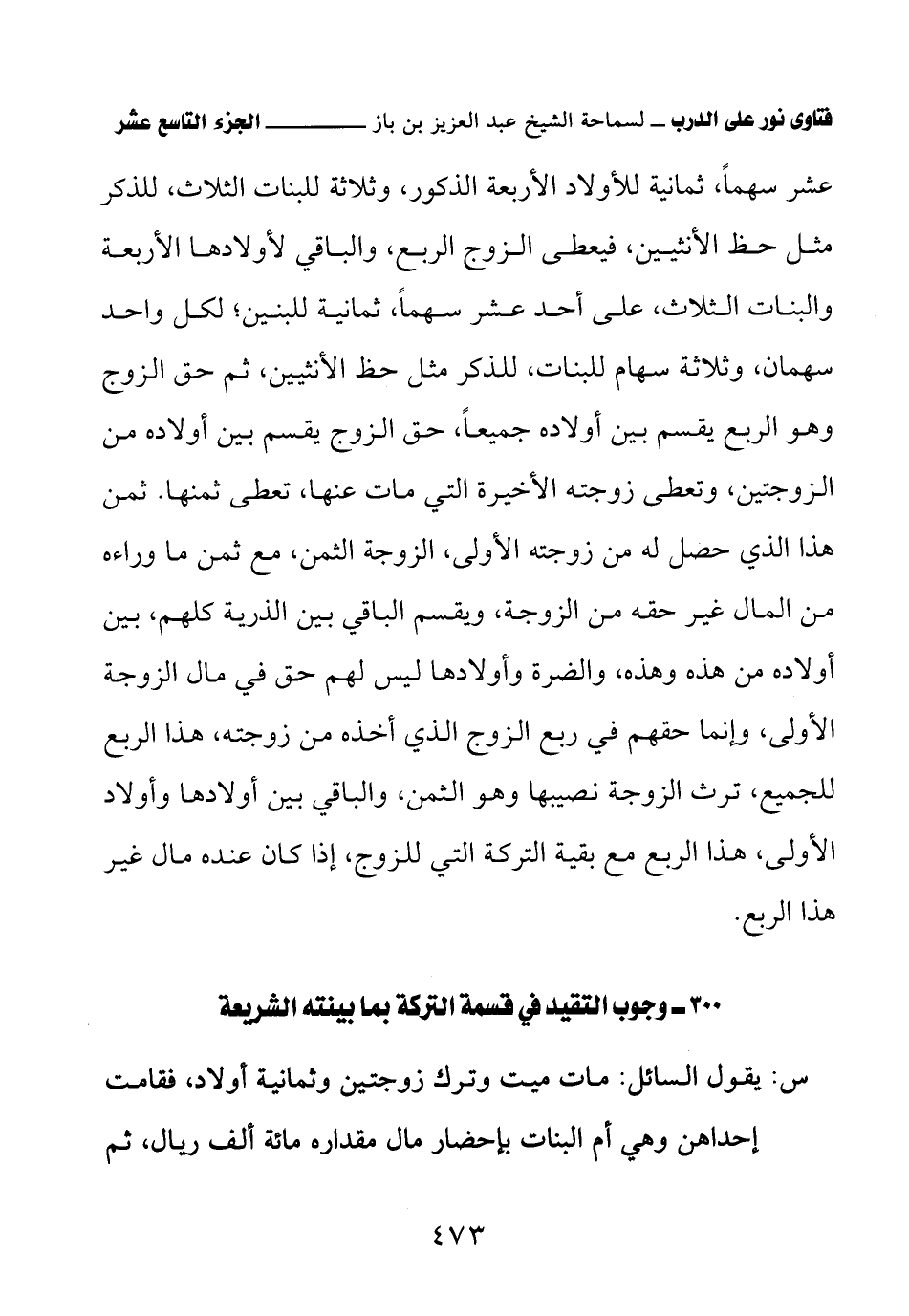 300 - وجوب التقيد في قسمة التركة بما بينته الشريعة
