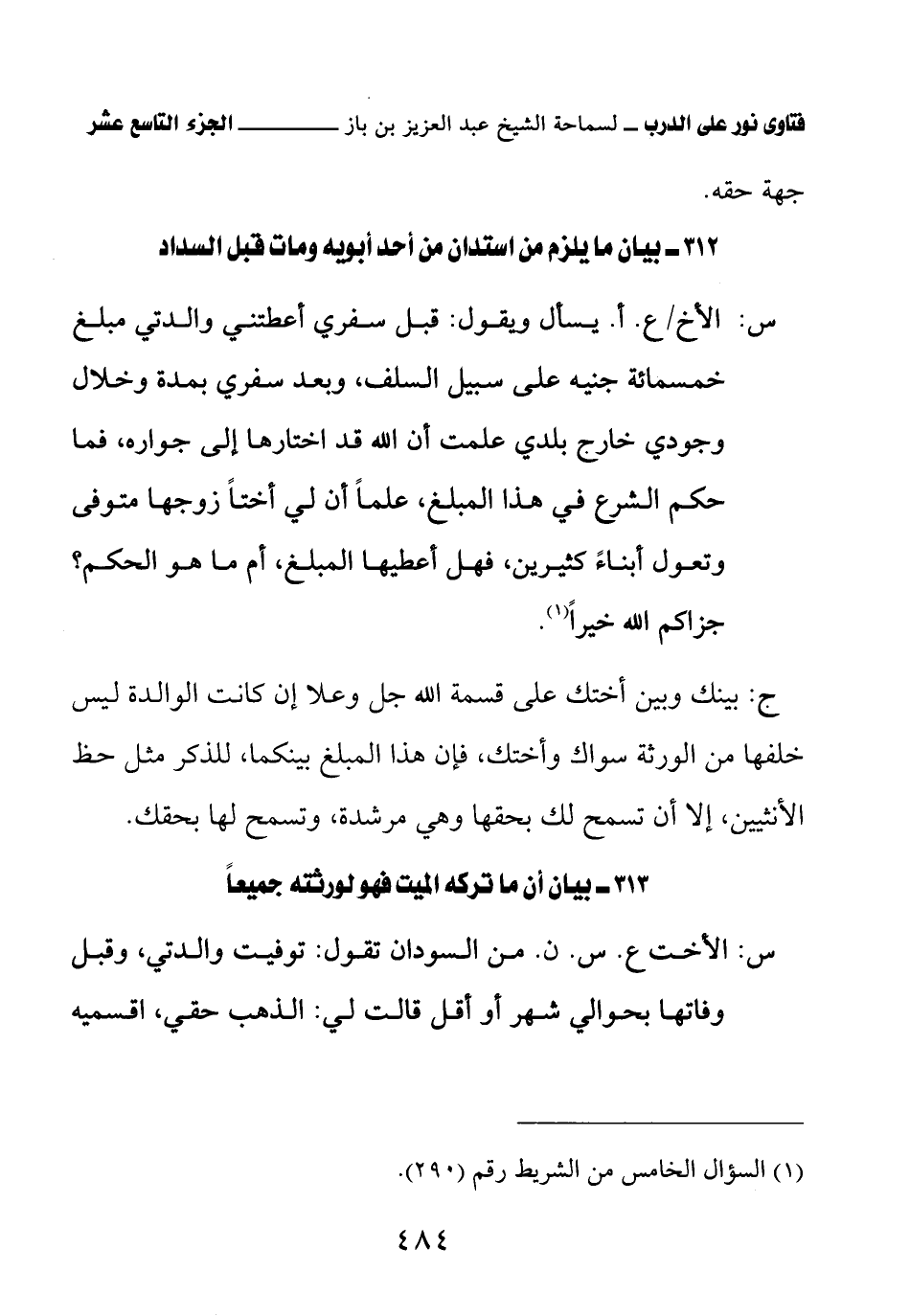 (¬1) السؤال الخامس من الشريط رقم (290).