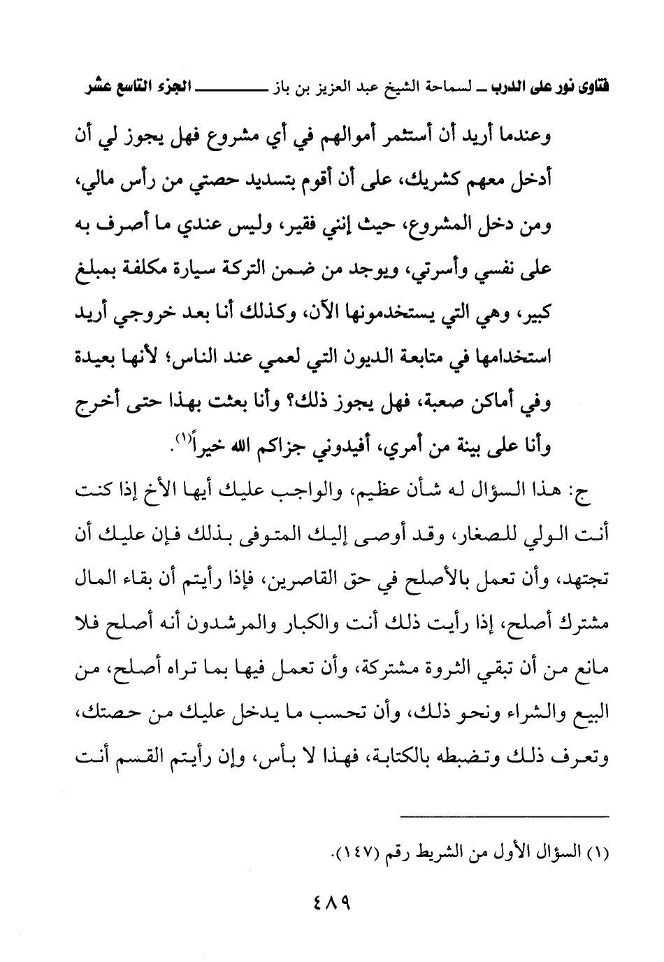 كتاب فتاوى نور على الدرب لابن باز بعناية الشويعر (اسم الجزء: 19)