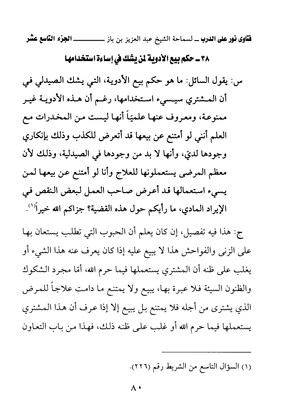 (¬1) السؤال التاسع من الشريط رقم (226).