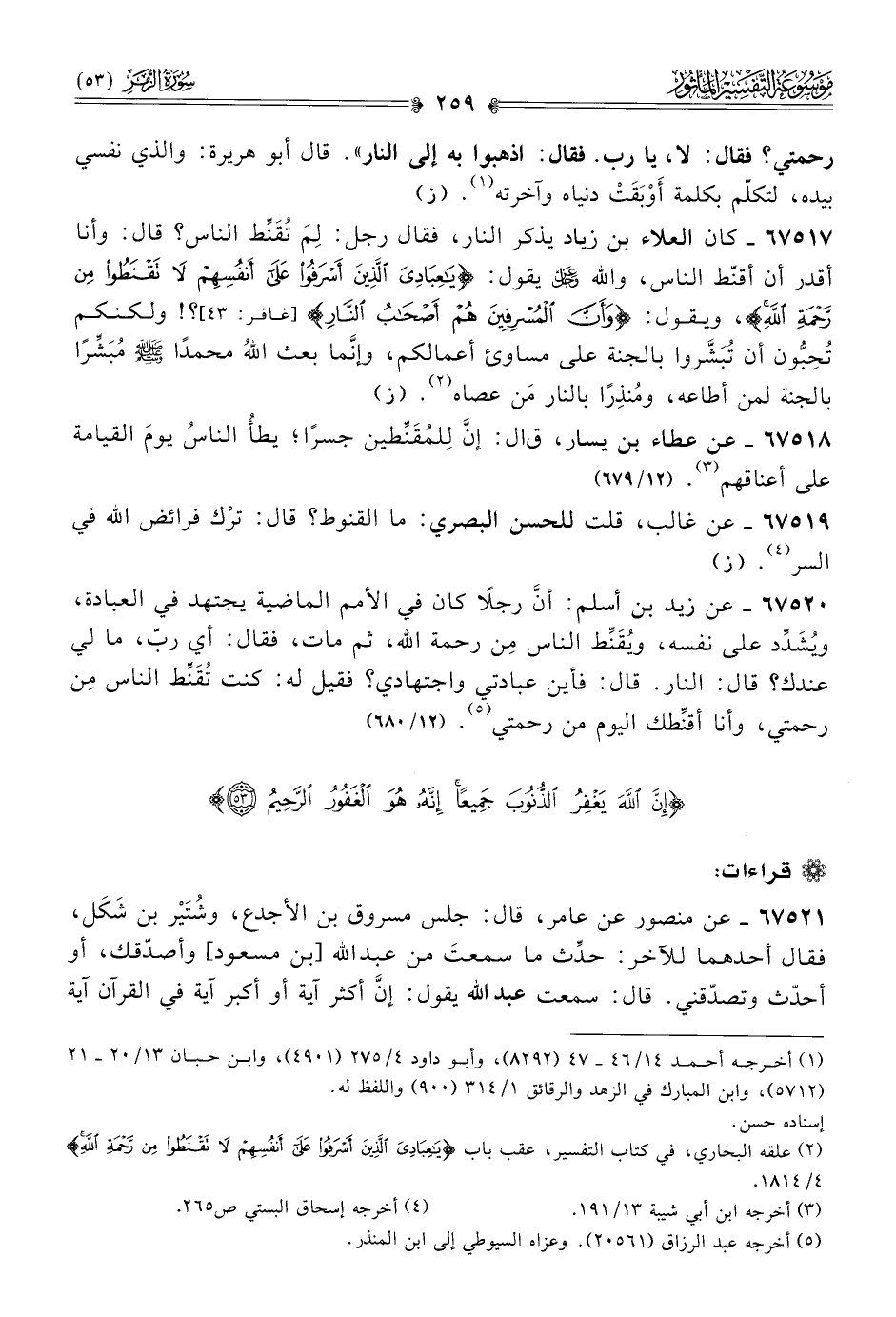 {إِنَّ اللَّهَ يَغْفِرُ الذُّنُوبَ جَمِيعًا إِنَّهُ هُوَ الْغَفُورُ الرَّحِيمُ (٥٣)}