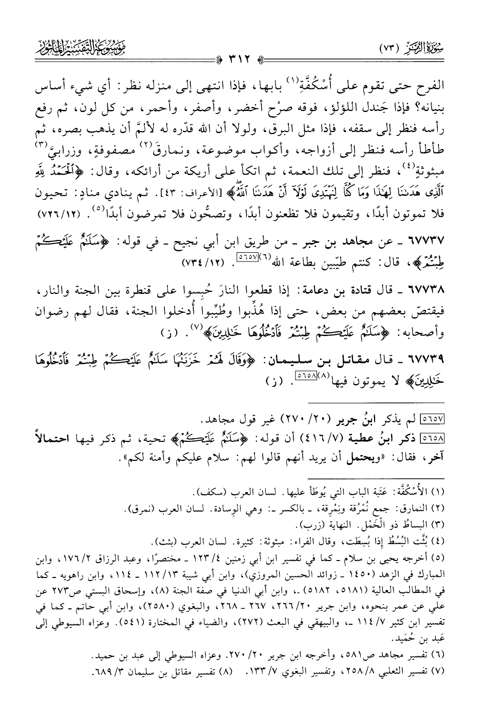 (¬٧) تفسير الثعلبي ٨/ ٢٥٨، وتفسير البغوي ٧/ ١٣٣.