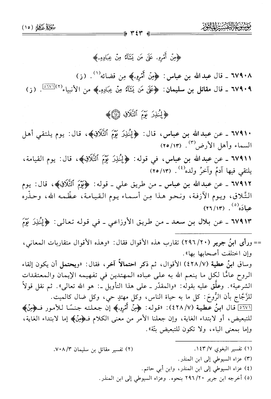 ٦٧٩١٠ - عن عبد الله بن عباس، قال: {لِيُنْذِرَ يَوْمَ التَّلاقِ}، قال: يوم يلتقي أهل السماء وأهل الأرض (¬٣). (١٣/ ٢٥)