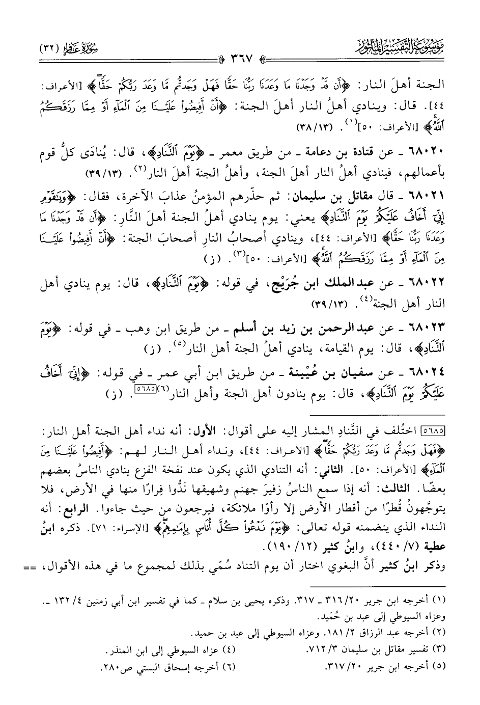 ٦٨٠٢٠ - عن قتادة بن دعامة -من طريق معمر- {يَوْمَ التَّنادِ}، قال: يُنادى كلُّ قوم بأعمالهم، فينادي أهلُ النار أهلَ الجنة، وأهلُ الجنة أهلَ النار (¬٢). (١٣/ ٣٩)
