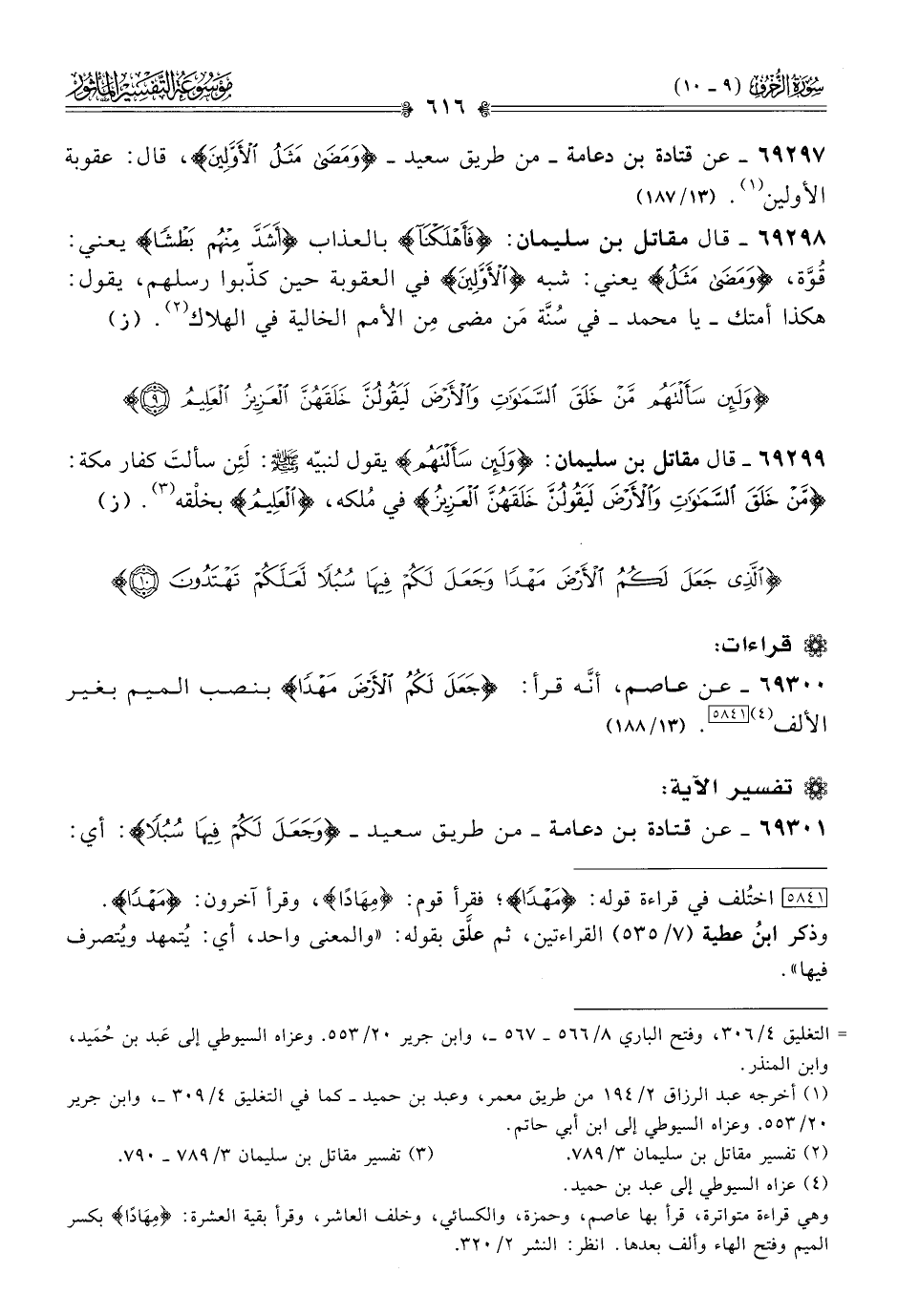 ٦٩٣٠١ - عن قتادة بن دعامة -من طريق سعيد- {وجَعَلَ لَكُمْ فِيها سُبُلًا}: أي: