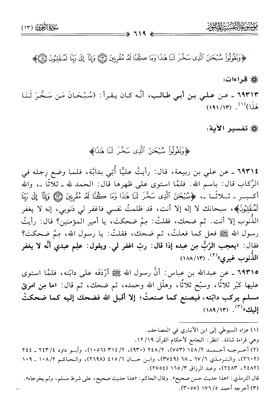 ٦٩٣١٣ - عن علي بن أبي طالب، أنّه كان يقرأ: (سُبْحانَ مَن سَخَّرَ لَنا هَذا) (¬١). (١٣/ ١٩١)