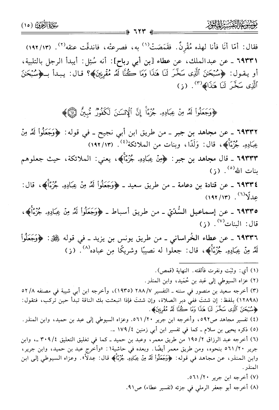 ٦٩٣٣٢ - عن مجاهد بن جبر -من طريق ابن أبي نجيح- في قوله: {وجَعَلُوا لَهُ مِن عِبادِهِ جُزْءًا}، قال: ولَدًا، وبنات من الملائكة (¬٤). (١٣/ ١٩٢)