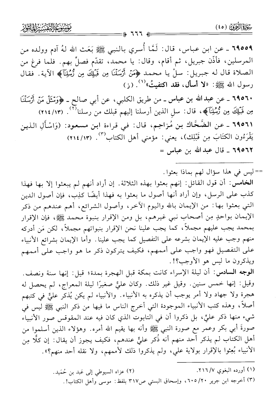 ٦٩٥٦٠ - عن عبد الله بن عباس -من طريق الكلبي، عن أبي صالح- {واسْأَلْ مَن أرْسَلْنا مِن قَبْلِكَ مِن رُسُلِنا}، قال: سلِ الذين أرسلنا إليهم قبلك من رسلنا (¬٢). (١٣/ ٢١٤)