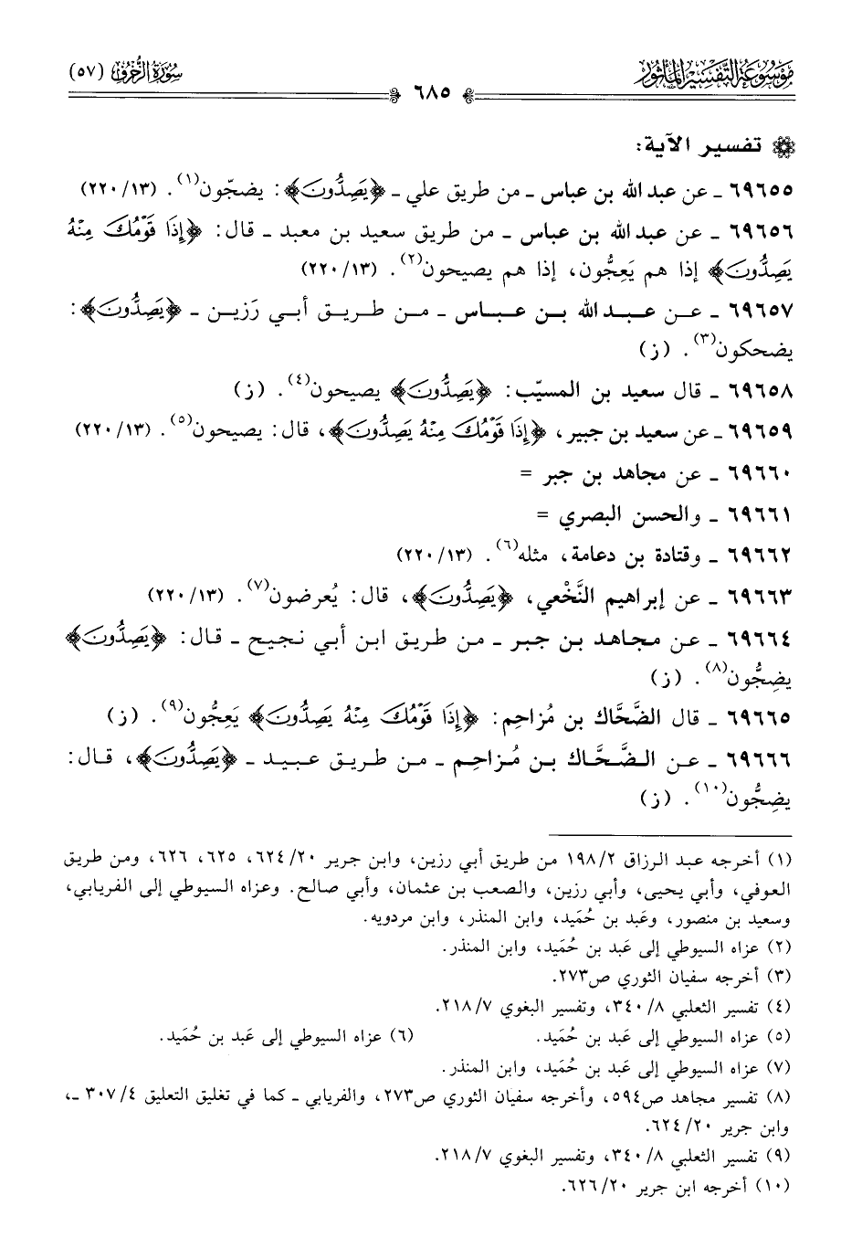 ٦٩٦٦٣ - عن إبراهيم النَّخْعي، {يَصِدُّونَ}، قال: يُعرضون (¬٧). (١٣/ ٢٢٠)