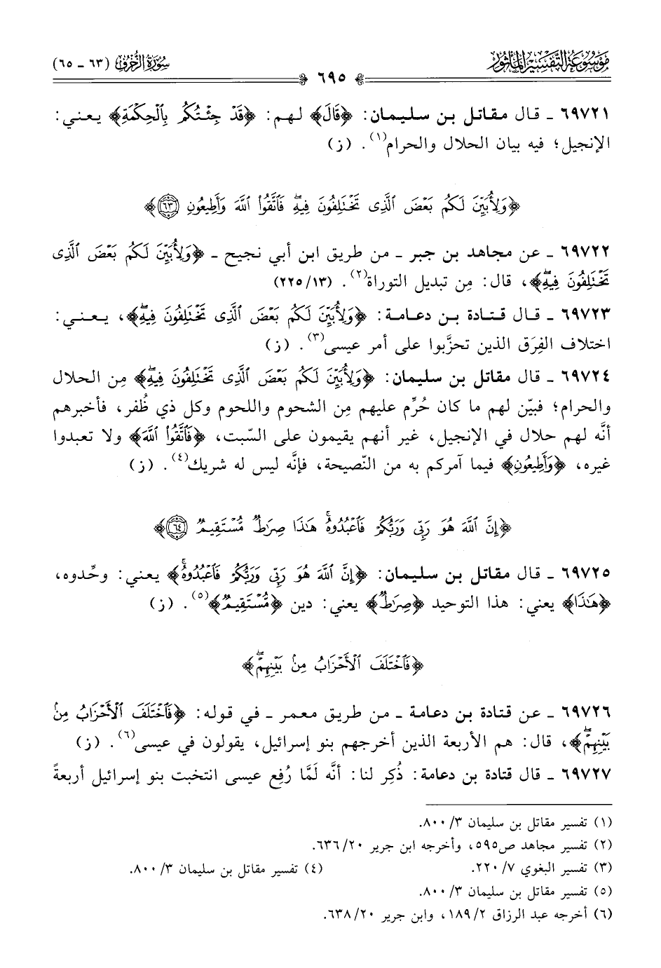 ٦٩٧٢٣ - قال قتادة بن دعامة: {ولِأُبَيِّنَ لَكُمْ بَعْضَ الَّذِي تَخْتَلِفُونَ فِيهِ}، يعني: اختلاف الفِرَق الذين تحزَّبوا على أمر عيسى (¬٣). (ز)