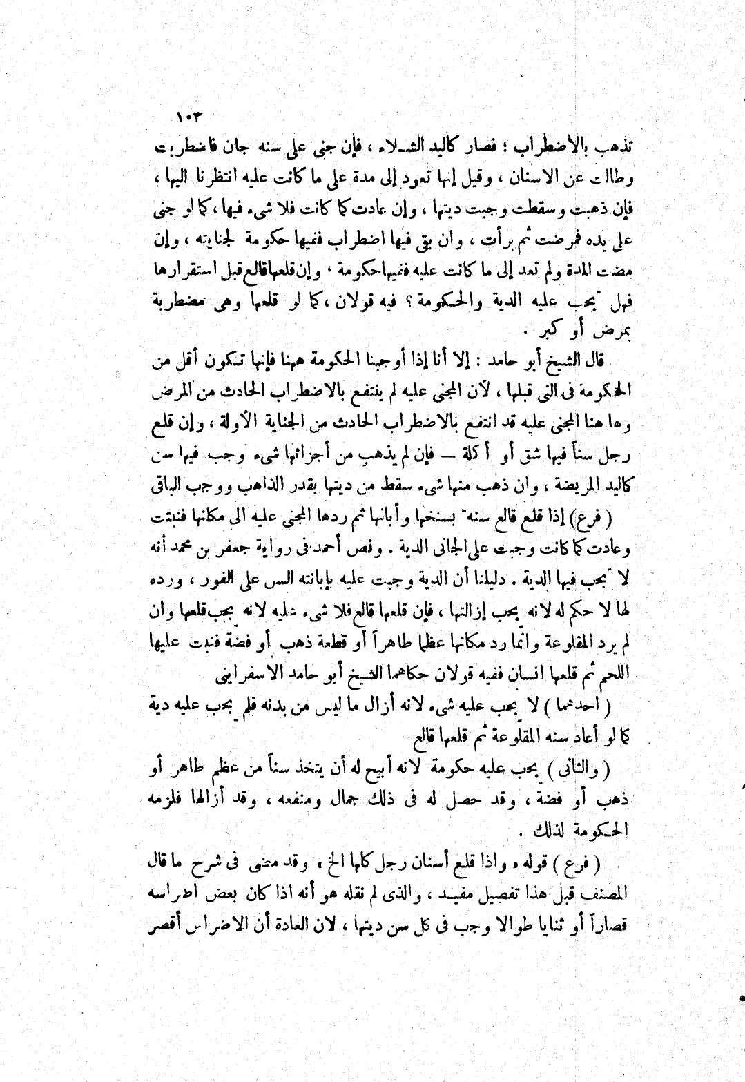 قال الشيخ أبو حامد: إلا أنا إذا أوجبنا الحكومة ههنا فإنها تكون أقل من الحكومة في التى قبلها، لان المجني عليه لم ينتفع بالاضطراب الحادث من المرض وهاهنا المجني عليه قد انتفع بالاضطراب الحادث من الجناية الاولة، وإن قلع رجل سنا فيها شق أو أكلة فإن لم يذهب من أجزائها شئ وجب فيها سن كاليد المريضة، وان ذهب منها شئ سقط من ديتها بقدر الذاهب ووجب الباقي (فرع)