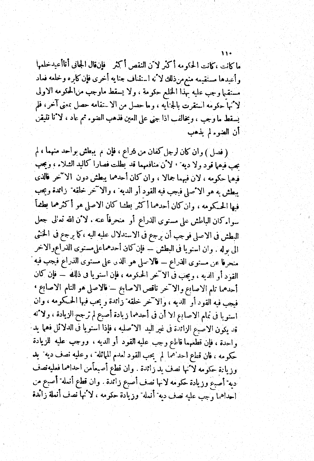 منحرفا عن مستوى الذراع فالأصلي هو الذى على مستوى الذراع فيجب فيه القود أو الديه، ويجب في الآخر الحكومه، فإن استويا في ذلك فإن كان أحدهما تام الاصابع والآخر ناقص الاصابع فالأصلي هو التام الاصابع، فيجب فيه القود أو الديه، والآخر خلقة زائدة ويجب فيها الحكومه، وان استويا في تمام الاصابع الا أن في أحدهما زيادة أصبع لم ترجح الزيادة، ولانه قد يكون الاصبع الزائدة في غير اليد الاصلية، فإذا استويا في الدلائل فهما يد واحدة، فإن قطعهما قاطع وجب عليه القود أو الديه، ووجب عليه للزيادة حكومه، فان قطع احداهما لم يجب القود لعدم المماثلة، وعليه نصف ديه يد وزيادة حكومه لانها نصف يد زائدة.