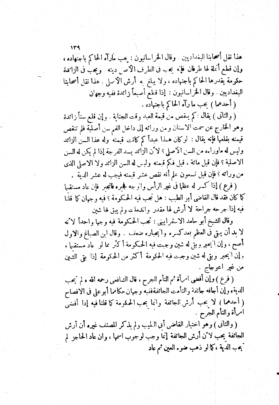 وقال ابن الصباغ والاول أصح، وإن انجبر وبقى له شين وجبت فيه الحكومة أكثر مما لو عاد مستقيما، وإن انجبر وبقى له شين وجبت فيه الحكومة أكثر من الحكومة إذا بقى الشين من غير اعوجاج.