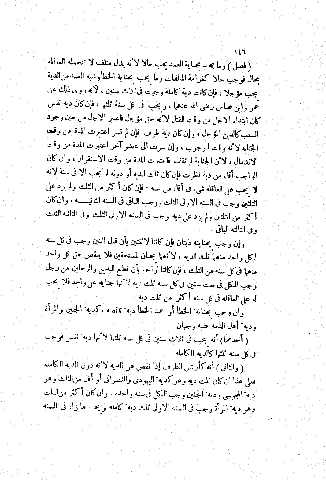 الاندمال، لان الجناية لم تقف فاعتبرت المدة من وقت الاستقرار، وان كان الواجب أقل من دية نظرت فإن كان ثلث الديه أو دونه لم تجب الا في سنة لانه لا يجب على العاقلة شئ في أقل من سنه، فإن كان أكثر من الثلث ولم يزد على الثلثين وجب في السنه الاولى الثلث ووجب الباقي في السنه الثانيه، وان كان أكثر من الثلثين ولم يزد على ديه وجب في السنه الاولى الثلث وفى الثانيه الثلث وفى الثالثه الباقي وإن وجب بجنايته ديتان فإن كانتا لاثنتين بأن قتل اثنين وجب في كل سنه لكل واحد منهما ثلث الديه، لانهما يجبان لمستحقين فلا ينقص حق كل واحد منهما في كل سنه من الثلث، فإن كانتا لواحد بأن قطع اليدين والرجلين من رجل وجب الكل في ست سنين في كل سنه ثلث ديه لانها جنايه على واحد فلا يجب له على العاقلة في كل سنه أكثر من ثلث ديه وان وجب بجناية الخطأ أو عمد الخطأ دية ناقصه، كدية الجنين والمرأة ودية أهل الذمه ففيه وجهان.