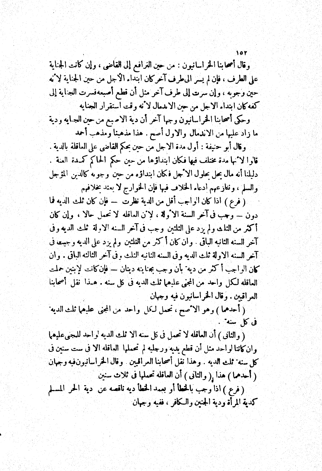 أن العاقلة لا تحمل في كل سنه الا ثلث الديه لواحد للمجني عليهما وان كانتا لواحد مثل أن قطع يديه ورجليه لم تحملها العاقلة الا في ست سنين في كل سنة ثلث الديه.