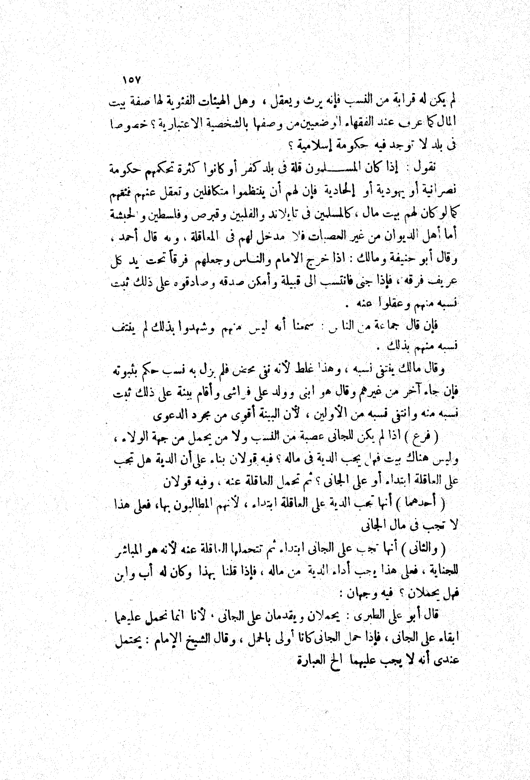 نقول: إذا كان المسلمون قلة في بلد كفر أو كانوا كثرة تحكمهم حكومة نصرانية أو يهودية أو إلحادية فإن لهم أن ينتظموا متكافلين وتعقل عنهم فنقهم كما لو كان لهم بيت مال، كالمسلمين في تايلاند والفلبين وقبرص وفلسطين والحبشة أما أهل الديوان من غير العصبات فلا مدخل لهم في المعاقلة، به قال أحمد، وقال أبو حنيفة ومالك: إذا خرج الامام والناس وجعلهم فرقا تحت يد كل عريف فرقه، فإذا جنى فانتسب إلى قبيلة وأمكن صدقه وصادقوه على ذلك ثبت نسبه منهم وعقلوا عنه.
