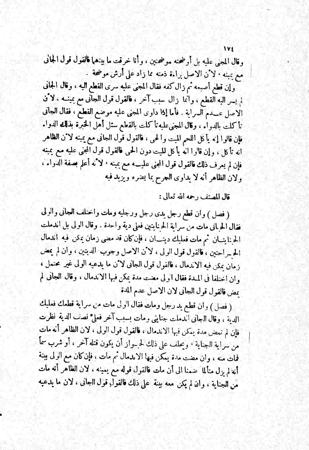 وان قطع يد رجل ومات فقال الولى مات من سراية قطعك فعليك الدية، وقال الجاني اندملت جنايتى ومات بسبب آخر فعلى نصف الدية نظرت فإن لم تمض مدة يمكن فيها الاندمال، فالقول قول الولى، لان الظاهر أنه مات من سراية الجناية، ويحلف على ذلك لجواز أن يكون قتله آخر، أو شرب سما فمات منه، وان مضت مدة يمكن فيها الاندمال ثم مات، فإن كان مع الولى بينة أنه لم يزل متألما ضمنا إلى أن مات فالقول قوله مع يمينه، لان الظاهر أنه مات من الجناية، وان لم يكن معه بينة على ذلك فالقول قول الجاني، لان ما يدعيه