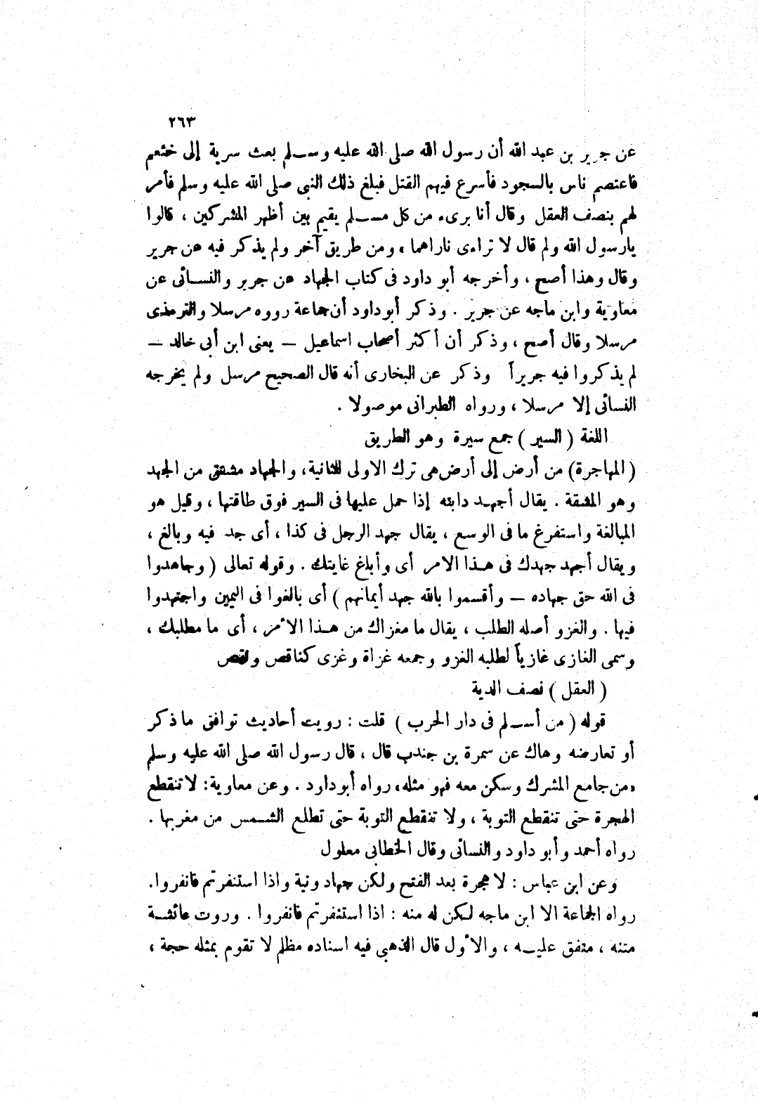 اللغة (السير) جمع سيرة وهو الطريق (المهاجرة) من أرض إلى أرض هي ترك الاولى للثانية، والجهاد مشتق من الجهد وهو المشقة.