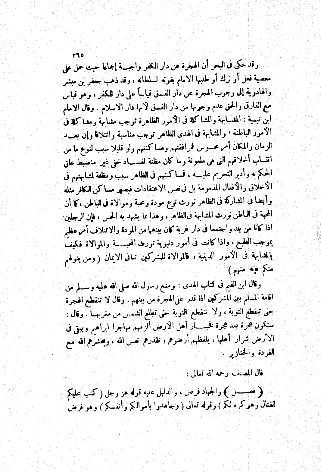 الزمان والمكان أمر محسوس فمرافقتهم ومساكنتهم ولو قليلا سبب لنوع ما من انتساب أخلاقهم التى هي ملعونة وما كان مظنة لفساد خفى غير منضبط علق الحكم به وأدير التحريم عليه، فمساكنتهم في الظاهر سبب ومظنة لمشابهتهم في الاخلاق والافعال المذمومة بل في نفس الاعتقادات فيصير مساكن الكافر مثله وأيضا في المشاركة في الظاهر تورث نوع مودة ومحبة وموالاة في الباطن، كما أن المحبة في الباطن تورث المشابهة في الظاهر، وهذا مما يشهد به الحس، فإن الرجلين إذا كانا من بلد واجتمعا في دار غربة كان بينهما من المودة والائتلاف أمر عظيم بموجب الطبع، وإذا كانت في أمور دنيوية تورث المحبة والموالاة فكيف بالمشابهة في الامور الدينية، فالموالاة للمشركين تافى الايمان (ومن يتولهم منكم فإنه منهم) وقال ابن القيم في كتاب الهدى: ومنع رَسُولُ اللَّهِ صَلَّى اللَّهُ عَلَيْهِ وَسَلَّمَ مَنْ اقامة المسلم بين المشركين إذا قدر على الهجرة من بينهم.