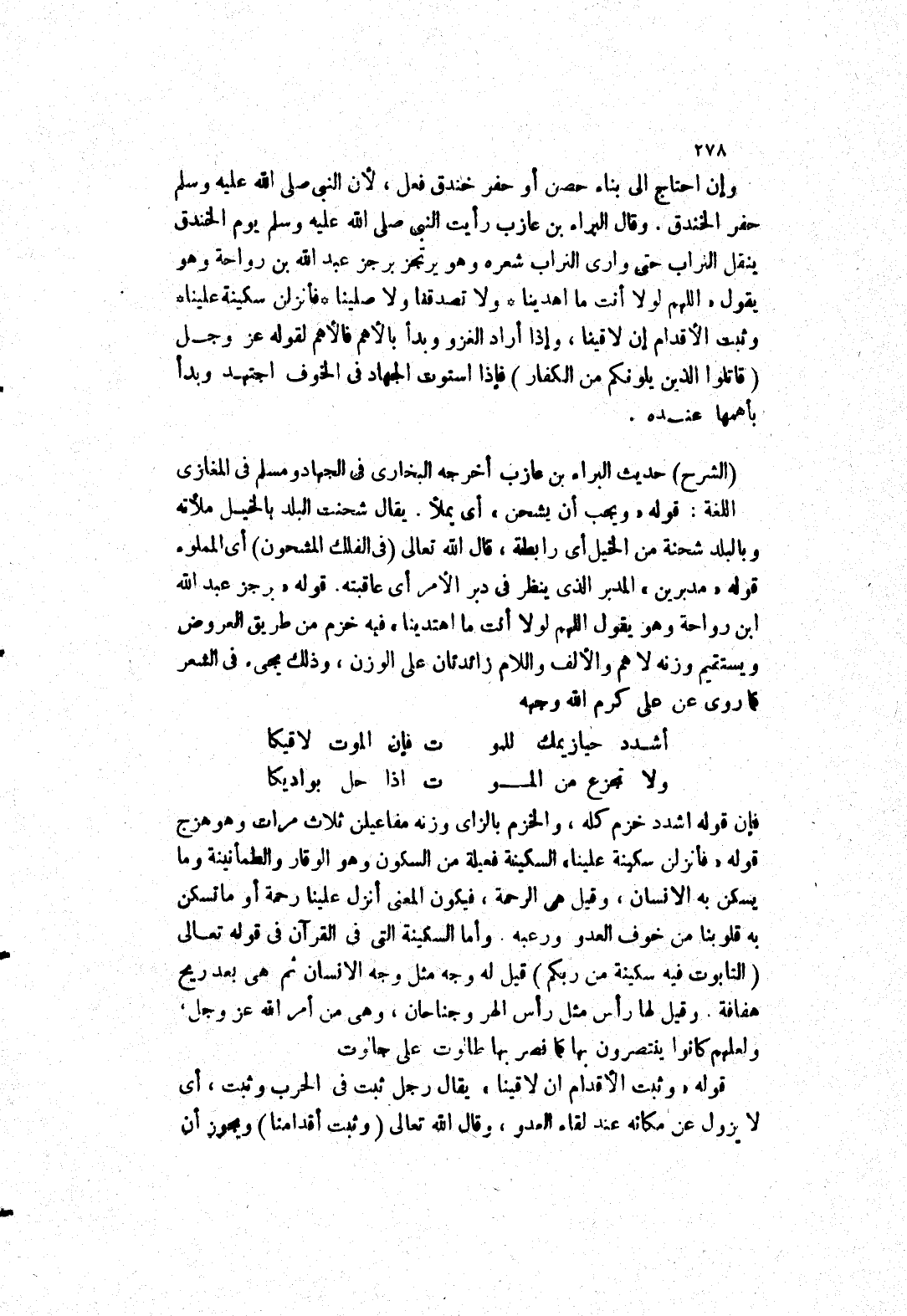 (الشرح) حديث البراء بن عازب أخرجه البخاري في الجهاد ومسلم في المغازى اللغة: قوله (ويجب أن يشحن) أي يملا.