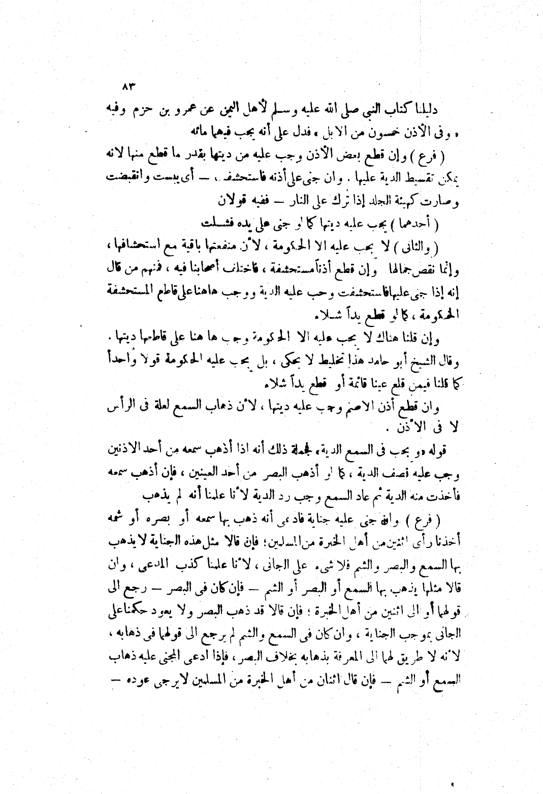 الجاني بموجب الجناية، وان كان في السمع والشم لم يرجع إلى قولهما في ذهابه، لانه لا طريق لهما إلى المعرفة بذهابه بخلاف البصر، فإذا ادعى المجني عليه ذهاب السمع أو الشم فإن قال اثنان من أهل الخبرة من المسلمين لا يرجى عوده