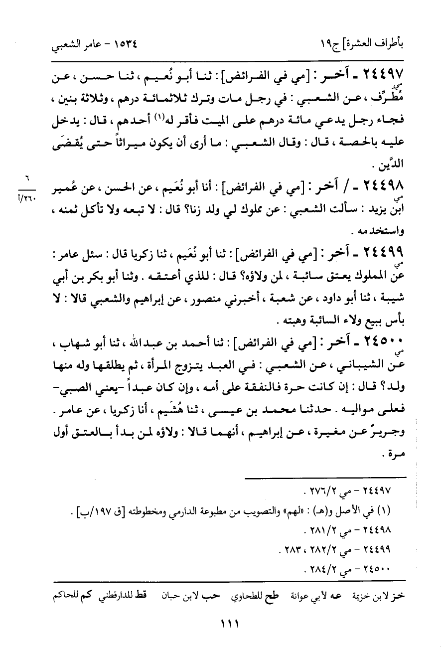24498 - /آخر: [مي في الفرائض] : أنا أبو نُعَيم، عن الحسن، عن عُمير ابن يزيد: سألت الشعبي: عن مملوك لي ولد زنا؟ قال: لا تبعه ولا تأكل ثمنه، واستخدمه.