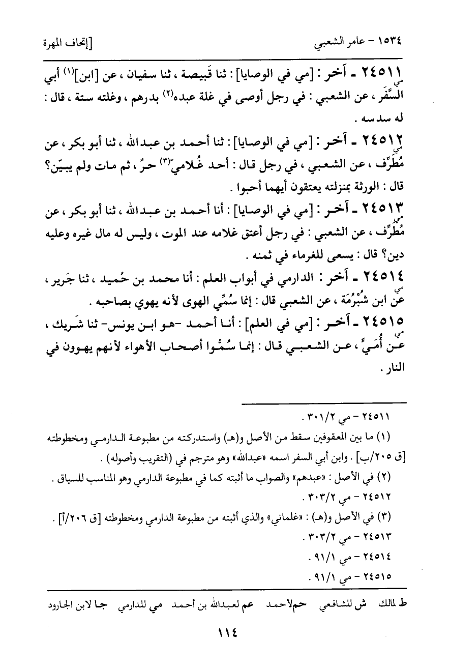 24515 - مي - آخر: [مي في العلم] : أنا أحمد - هو ابن يونس - ثنا شَريك، عن أُمَيًّ، عن الشعبي قال: إنما سُمُّوا أصحاب الأهواء لأنهم يهوون في النار.