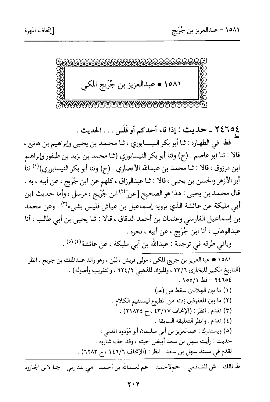 24654 - قط - حديث: إذا قاء أحدكم أو قَلَس ... الحديث. قط في الطهارة: ثنا أبو بكر النيسابوري، ثنا محمد بن يحيى وإبراهيم بن هانئ، قالا: ثنا أبو عاصم. (ح) وثنا أبو بكر النيسابوري، (ثنا محمد بن يزيد بن طيفور وإبراهيم ابن مرزوق، قالا: ثنا محمد بن عبد الله الأنصاري. (ح) وثنا أبو بكر النيسابوري) ثنا أبو الأزهر والحسن بن يحيى، قالا: ثنا عبد الرزاق، كلهم عن ابن جُرَيج، عن أبيه، به. قال محمد بن يحيى: هذا هو الصحيح [عن] ابن جُرَيج، مرسل، وأما حديث ابن أبي مليكة عن عائشة الذي يرويه إسماعيل بن عياش فليس بشيء. وعن محمد بن إسماعيل الفارسي وعثمان بن أحمد الدقاق، قالا: ثنا يحيى بن أبي طالب، أنا عبد الوهاب، أنا جُرَيج، عن أبيه، نحوه. وباقي طرقه في ترجمة: عبد الله بن أبي مليكة، عن عائشة.