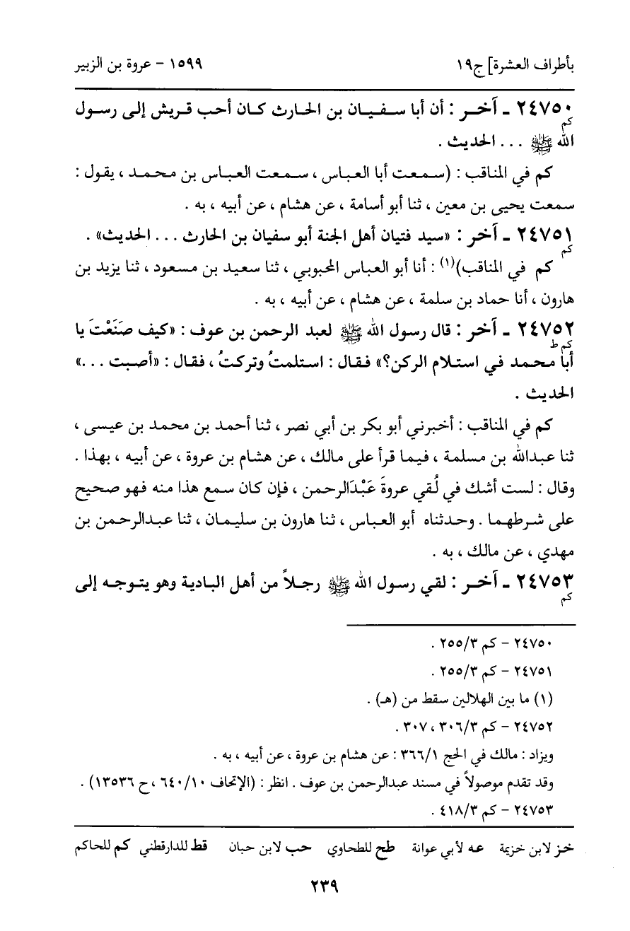 24751 - كم - آخر: ((سيد فتيان أهل الجنة أبو سفيان بن الحارث ... الحديث)) . كم في المناقب) : أنا أبو العباس المحبوبي، ثنا سعيد بن مسعود، ثنا يزيد بن هارون، أنا حماد بن سلمة، عن هشام، عن أبيه، به.