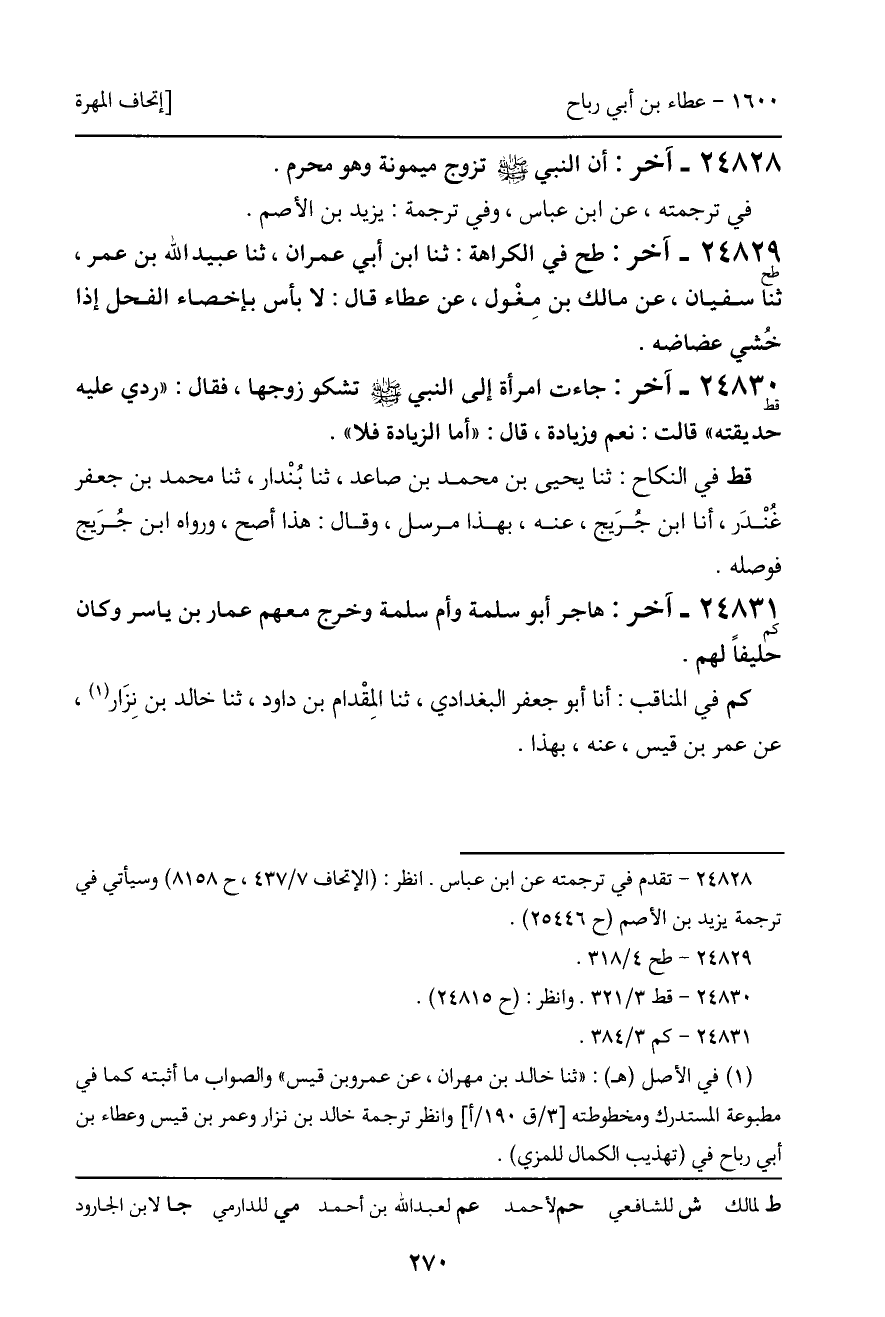 24828 - آخر: أن النبي صلى الله عليه وسلم تزوج ميمونة وهو محرم. في ترجمته، عن ابن عباس، وفي ترجمة: يزيد بن الأصم.